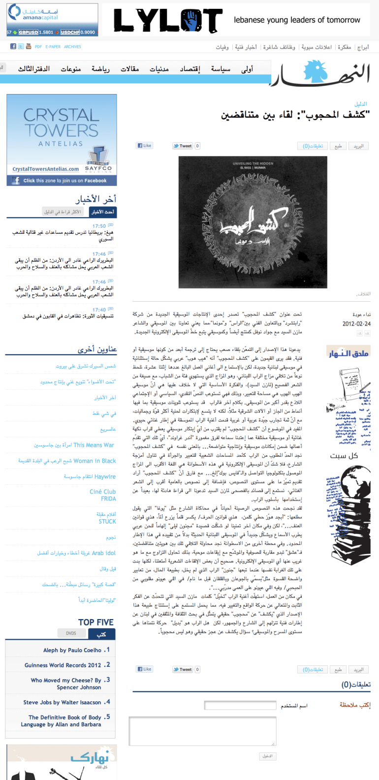 One thought on “Press Review // El Rass & Munma // Kachf el Mahjoub”
