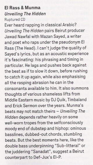 Four months following the release of El Rass & Munma‘s first collaboration “Kachf el Mahjoub / Unveiling the Hidden”, on the Ruptured music label, here are some of the reviews that were written about this excellent and unique album